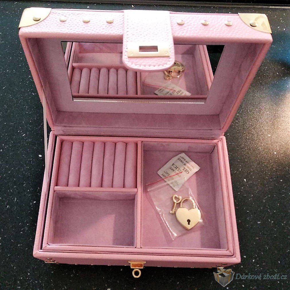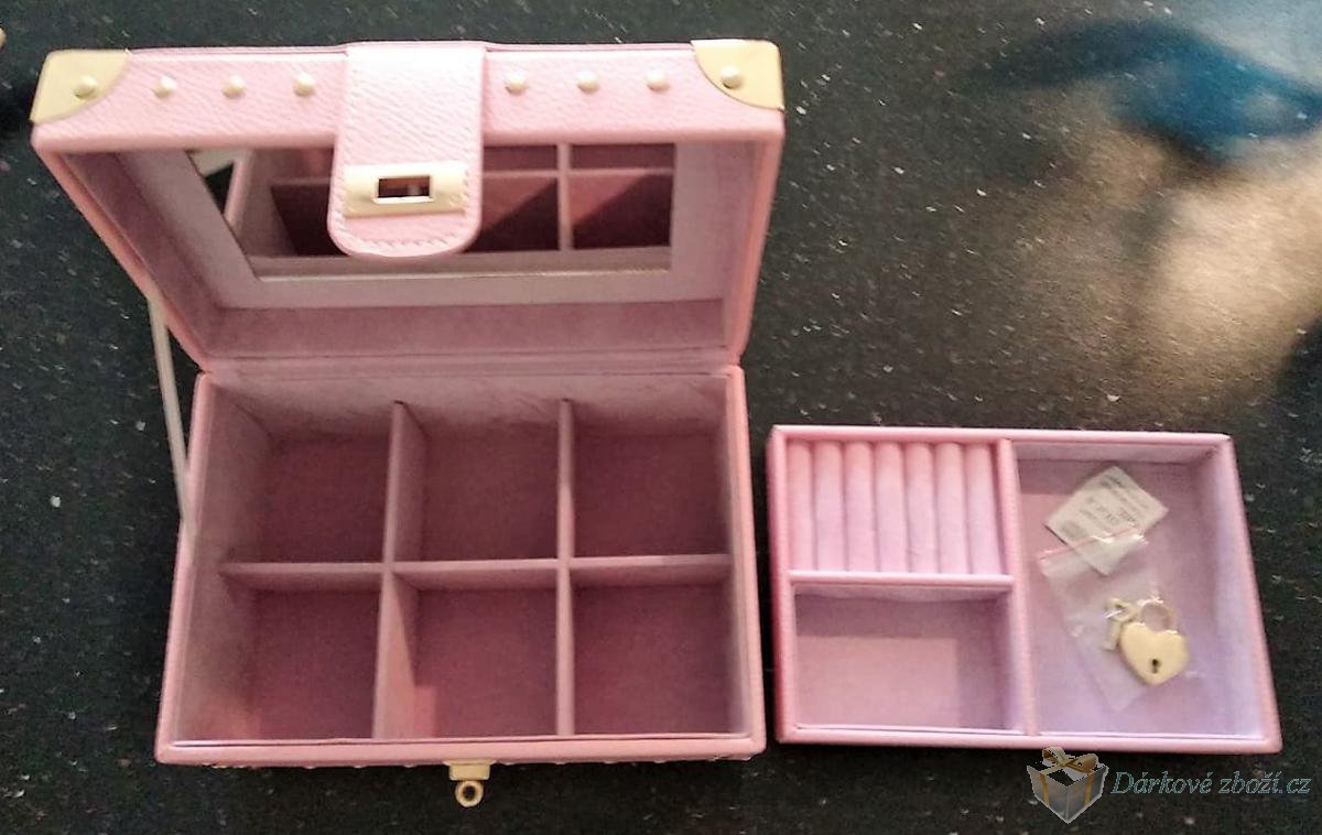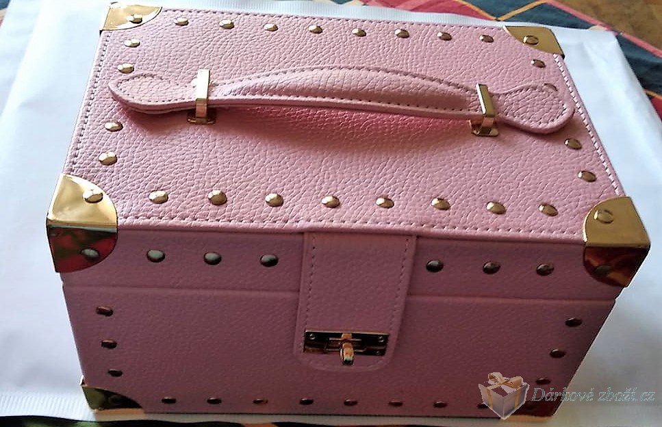 Luxusní šperkovnice Růžová s kováním koženáRůžová luxusní šperkovnice má dvě patra na náramky, hodinky, prstýnky, borže a další čennosti každé ženy. Šperkovnice je na zámek v podobě srdíčka. Rozměr: cca 225 x 155 x 130 cm |