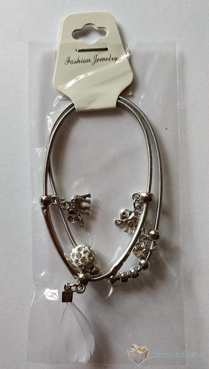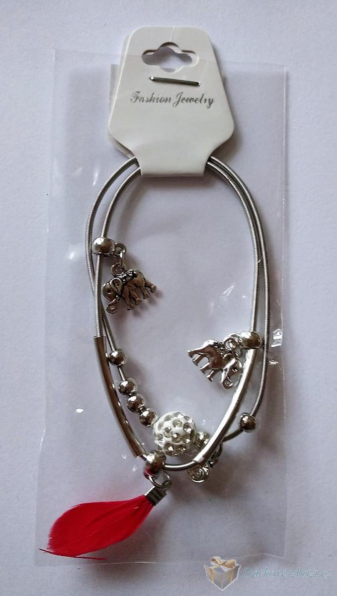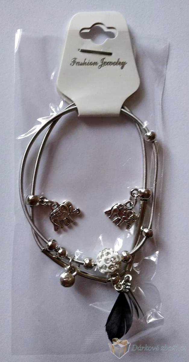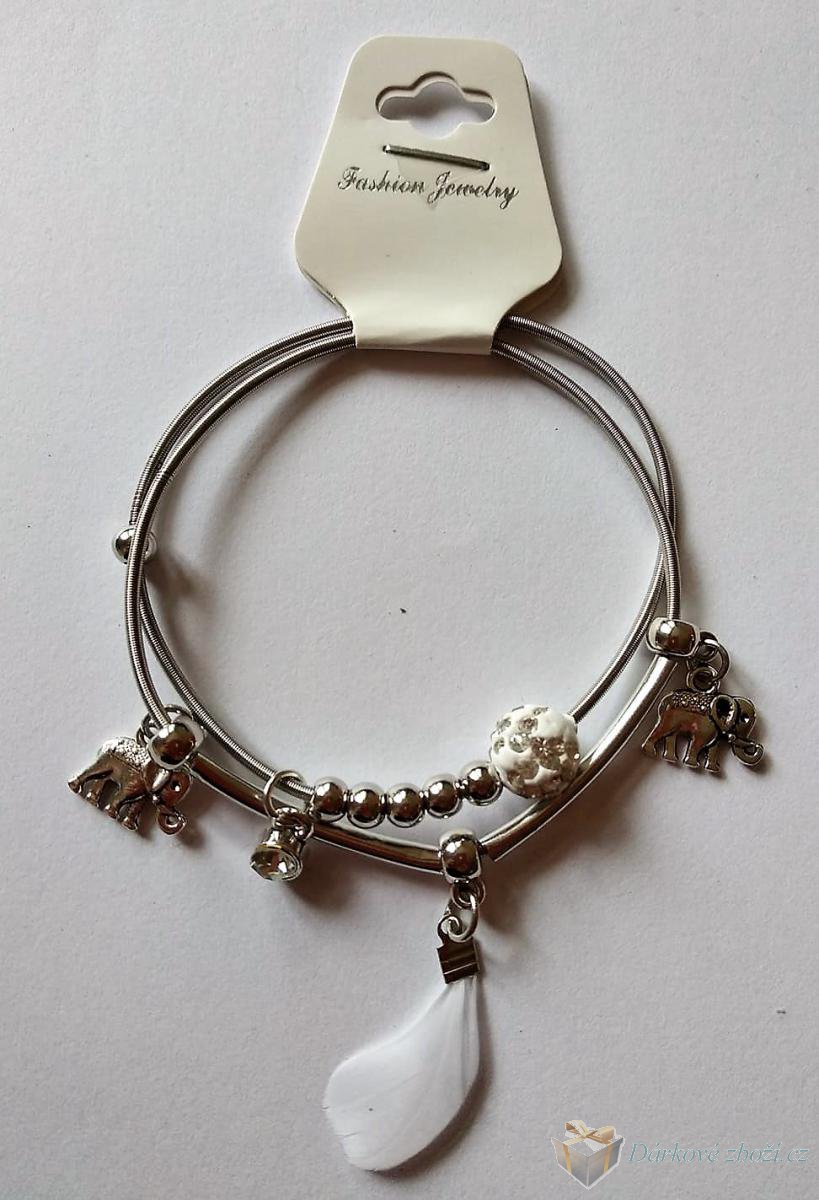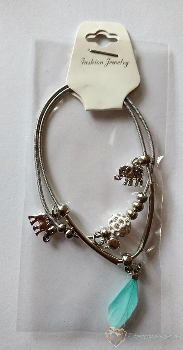 Náramek Sloni + pírko v 6-ti barváchNáramek 2 v 1 lze nosit dohromady nebo každý zvlášť. Náramek je roztahovací, takže ho navléknete skoro na každou ruku. Materiál: obecný kov Cena za jedno balení, do poznámky prosím uveďte a jakou barvu pírka máte zájem, děkujeme. |