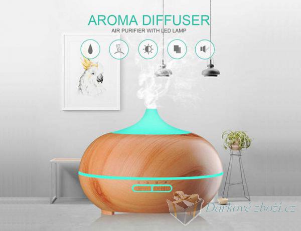 Aroma difuzér s LED osvětlením na dálkové ovládání "Jurta"Stylový doplněk do Vaší domácnosti, který Vám zvlhčí vzduch a zároveň si zvolíte Vámi oblíbenou vůni při chvílích relaxace či na zpříjemnění dne. Difuzér vytváří příjemnou mlhu a tím i zvlhčuje vzduch. Takto zvlhčený vzduch usnadňuje dýchání a zmírňuje kašel v důsledku nachlazení, alergií a chřipky. Další výhodou je, že snižuje pachy ve vašem domě z cigaret, vaření a domácích mazlíčků. Celkovou atmosféru Vám zajisté zpříjemní i integrované LED osvětlení. Difuzér má 7 příjemných barev Mlha a LED fungují nezávisle na sobě Součástí balení je i dálkové ovládání, kde můžete zvolit režim barev, nebo také nastavit typ mlhy dle svého přání Difuzér je velice tichý, proto se může používat i během spánku Tento typ difuzéru je doporučen pro použití v místnostech o ploše max 65 ㎡. Difuzér je ideální pro použití v salonech krásy, SPA, ložnici, obývacím pokoji, konferenční místnosti, kanceláři, recepci, na chodbách, WC, v dětských pokojích, hotelech apod..