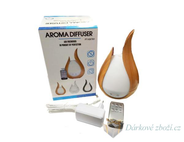 Aroma difuzér s LED osvětlením na dálkové ovládání imitace dřevoStylový doplněk do Vaší domácnosti, který Vám zvlhčí vzduch a zároveň si zvolíte Vámi oblíbenou vůni při chvílích relaxace či na zpříjemnění dne. Difuzér vytváří příjemnou mlhu a tím i zvlhčuje vzduch. Takto zvlhčený vzduch usnadňuje dýchání a zmírňuje kašel v důsledku nachlazení, alergií a chřipky. Další výhodou je, že snižuje pachy ve vašem domě z cigaret, vaření a domácích mazlíčků. Celkovou atmosféru Vám zajisté zpříjemní i integrované LED osvětlení. Difuzér má 7 příjemných barev Mlha a LED fungují nezávisle na sobě Součástí balení je i dálkové ovládání, kde můžete zvolit režim barev, nebo také nastavit typ mlhy dle svého přání Difuzér je velice tichý, proto se může používat i během spánku Tento typ difuzéru je doporučen pro použití v místnostech o ploše max 65 ㎡. Difuzér je ideální pro použití v salonech krásy, SPA, ložnici, obývacím pokoji, konferenční místnosti, kanceláři, recepci, na chodbách, WC, v dětských pokojích, hotelech apod..