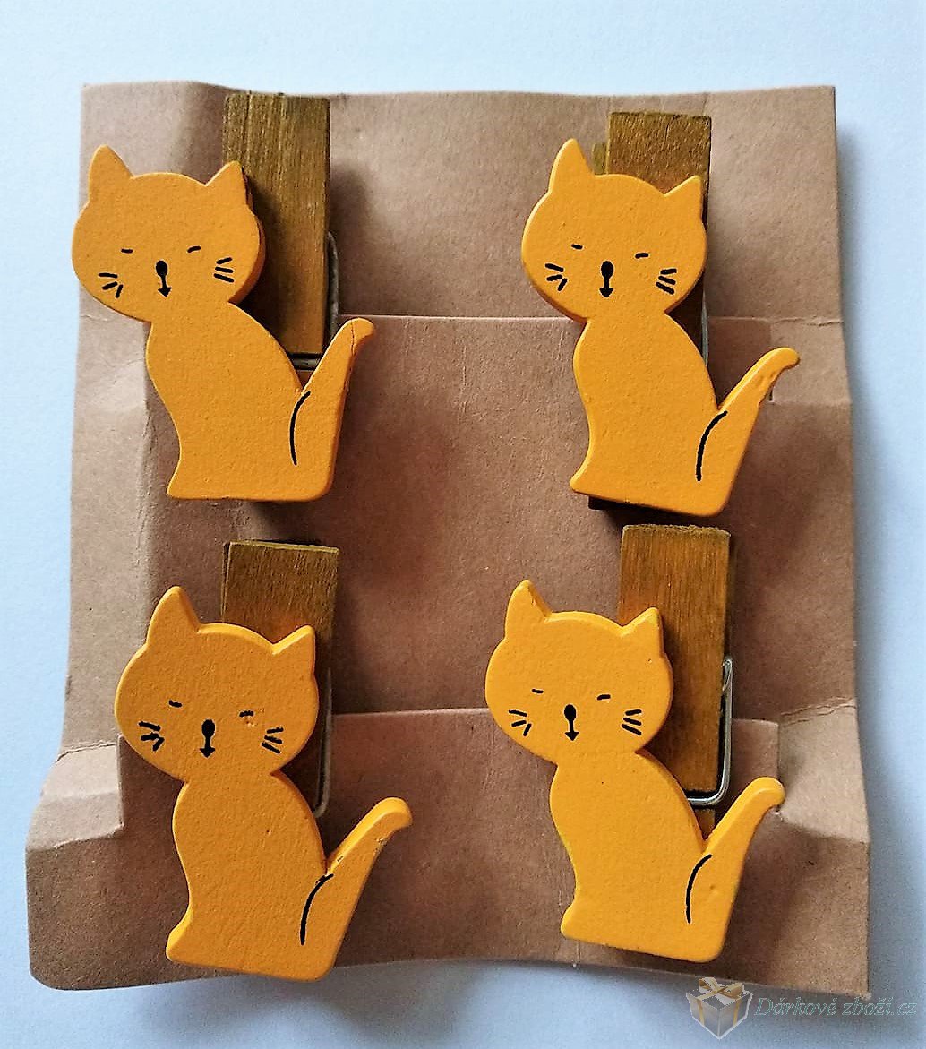 Sada 4 dřevěných kolíčků s motivem Kočka.