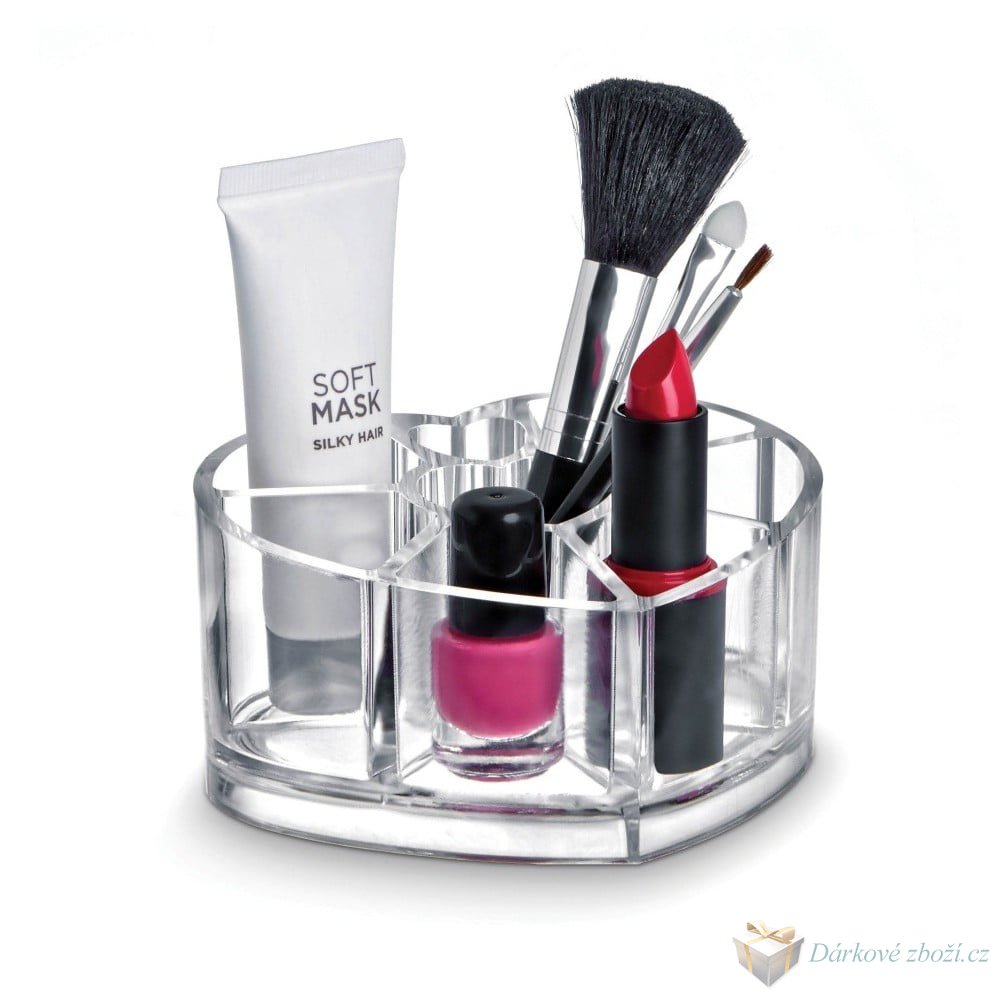 Organizér na kosmetiku SrdceKosmetický organizér je ideální pro uložení všeho potřebného pro každodenní líčení. Pohodlně do něj umístíte laky na nehty, rtěnky, kosmetické štětce nebo vatové tyčinky. Vše bude rychle po ruce a kdykoliv k dispozici, přehledně roztříděné. Tímto získáte přehledně roztříděnou kosmetiku a budete mít vše rychle po ruce. Tyto originální kosmetické organizéry jsou ideální do domácnosti každé ženy. Už žádné hledání tužky na oči nebo řasenky, všechno budete mít krásně seřazené a uspořádané. Organizéry jsou z čirého plastu, takže se budou hodit do jakéhokoliv interiéru. Rozměry 11,5×9,3x6cm Materiál polystyren Ilustrační foto, kosmetika není součástí balení. |