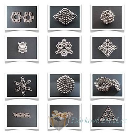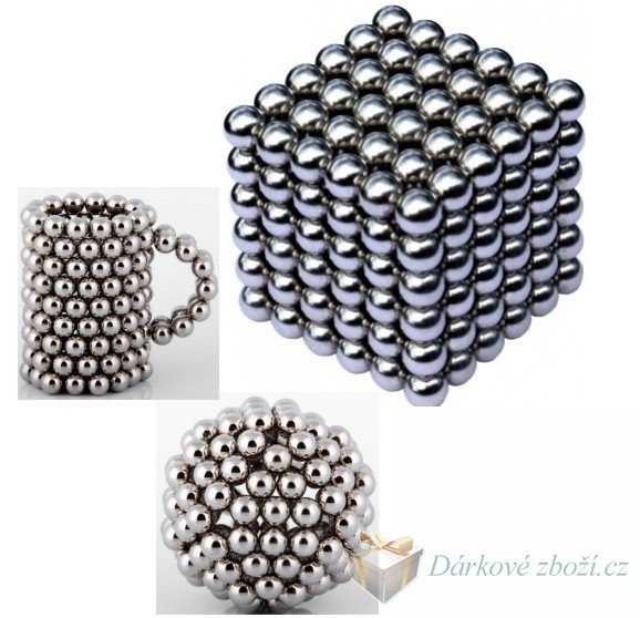 Magnetické kuličky NdFeB 216ks NEOCUBE 5mm ¨. PONIKLOVANÉ magnetické kuličky složené do kostky NEOCUBE v průhledném molitanu .. Z magnetických kuliček můžete sestavit bezpočet různých tvarů. Stačí jen zjistit jak na to... Bezpečnost Neodymové magnety jsou vyrobeny ze směsi NEODYMU, ŽELEZA A BORU. Jejich chemický vzorec je NdFeB. Magnety jsou schopny unést váhu, která přesahuje tisícinásobek vlastní váhy. V praxi to znamená, že magnet o velikosti malé fazole je schopen udržet předmět, který váží kolem 10 kg. Neodymové kuličky jsou potaženy tenkou vrstvou niklu, aby nedošlo ke korozi a jejich rychlému opotřebení.