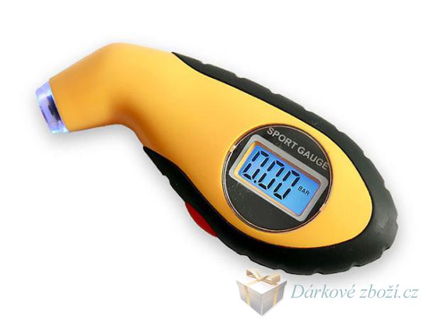 Digitální měřič tlaku v pneumatikáchDigitální měřič tlaku vzduchu v pneumatikách, měří v hodnotach PSI, Kpa, Bar, měří do 10 Baru (150PSI). Funkce zachycení špičkové hodnoty, LED osvětlující nástavec umožňují snadnější vyhledání ventilku, podsvícení displeje usnadňuje čtení naměřené hodnoty, automatické vypnutí po 20 sekundách.