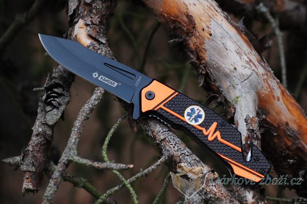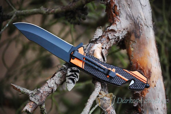 Kapení skládací nůž černo-oranžovýElegantní skládací kapesní nůž v dárkové krabičce s praktickou sponou k upevnění na opasek či kapsu. Ukončení nože praktickým hrotem.. Váha: 152 g Rozměry: cca 223 x 26 x 95 mm. |