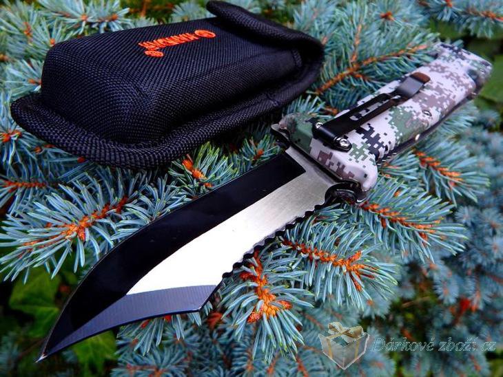Kapesní skládací nůž s motivem MaskáčElegantní skládací kapesní nůž v dárkové krabičce s praktickou sponou k upevnění na opasek či kapsu. Ukončení nože praktickým hrotem.. Rozměry nože: 230 x 42 x 15 mm |