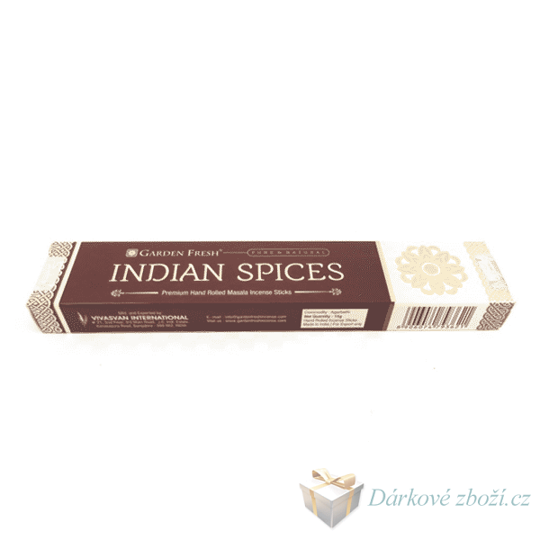 Kvalitní indické vonné tyčinky Garden Fresh Indian spices. Vyvážená vůně indického koření, ve které vyniká příjemně osvěžující vůně anýzu.