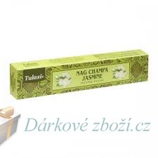 Kvalitní indické vonné tyčinky Tulasi Nag Champa Jasmine s vůní bílých kvítků jasmínu.
